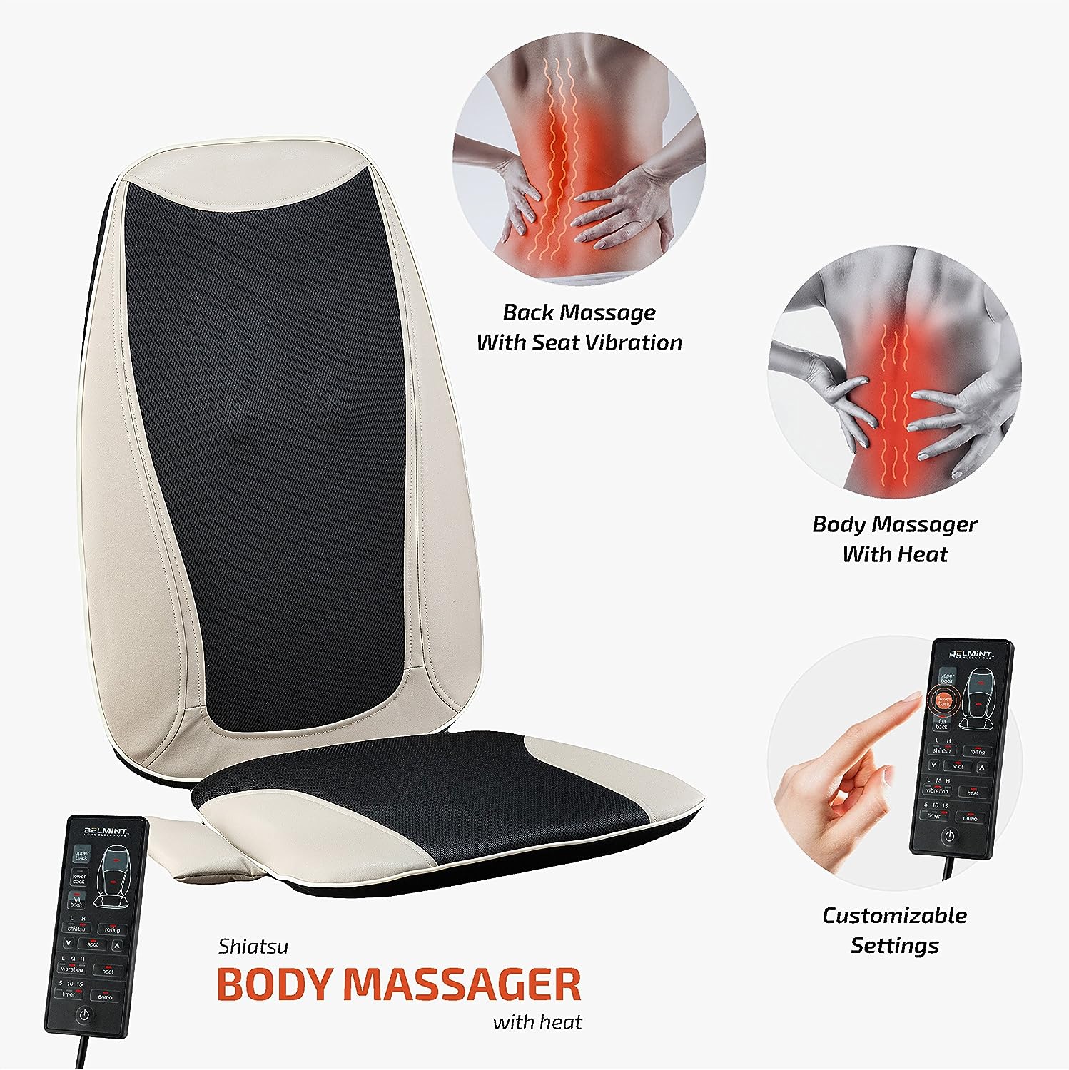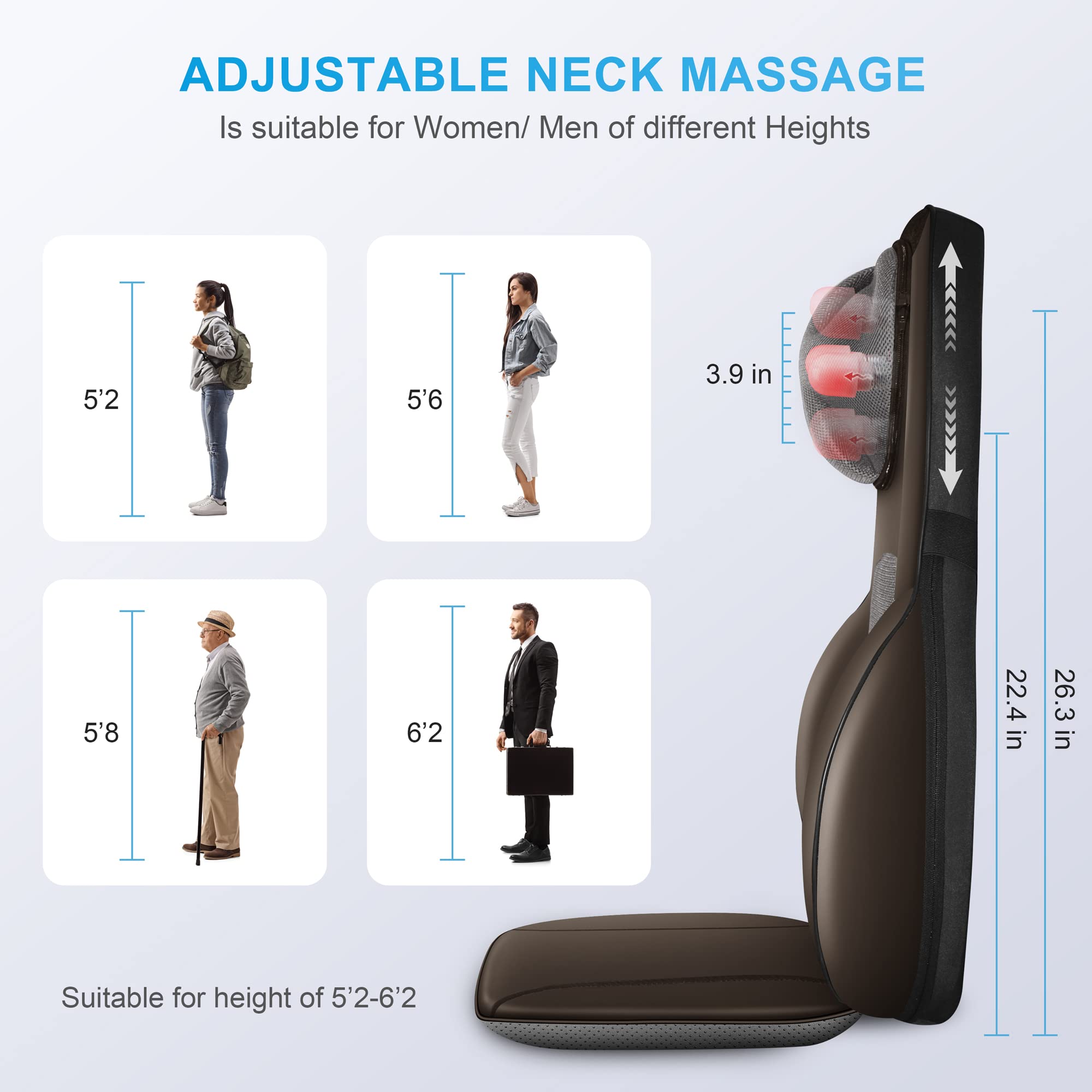 This is really great for me. Coming home from work, it helps relieve all the tension. So worth it! The price is great too. I fold up a blanket and sit on it so it really gets the neck area. The warm heat is amazing. Highly recommend it!