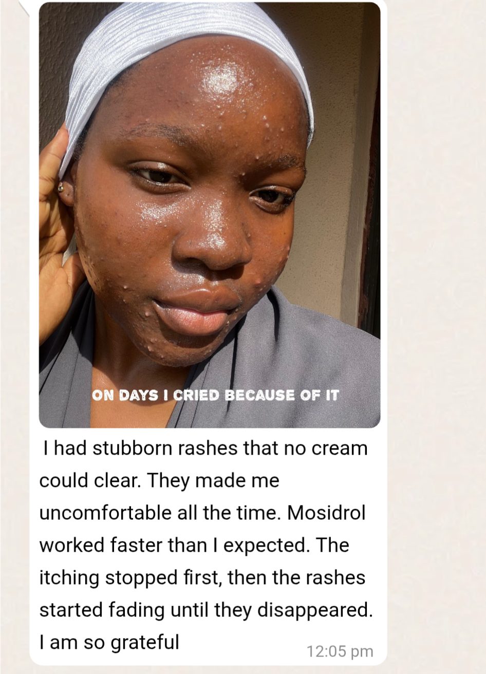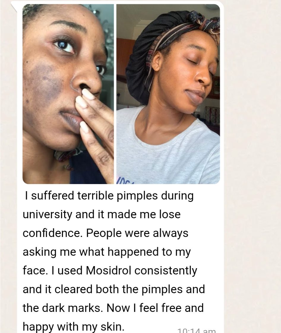 I struggled with pimples for many years. Most products made my skin sensitive and painful. Mosidrol was different. It was gentle but effective. After some weeks, my pimples reduced and my face felt soft. It gave me back my confidence as a woman.