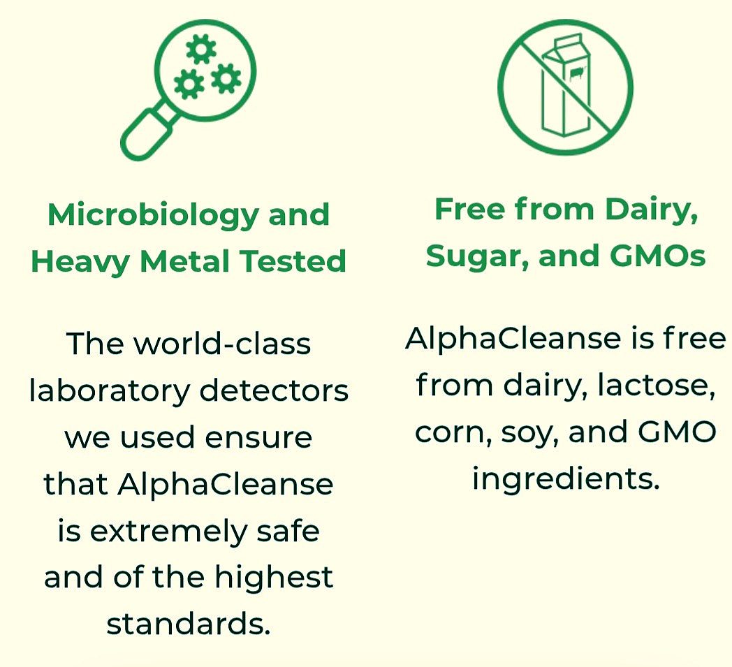 • AlphaCleanse is made using organic, high quality, premium, and natural ingredients that are safe for regular consumption. The blend is formulated using only natural herbs and superfoods in conservative amounts, making it safe for long-term consumption.