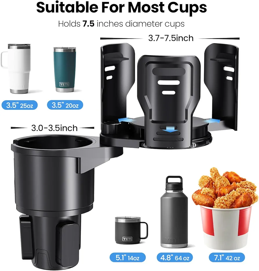 • You can now save more space in your car by adjusting the cup size to perfectly contain your food, drinks, snacks etc