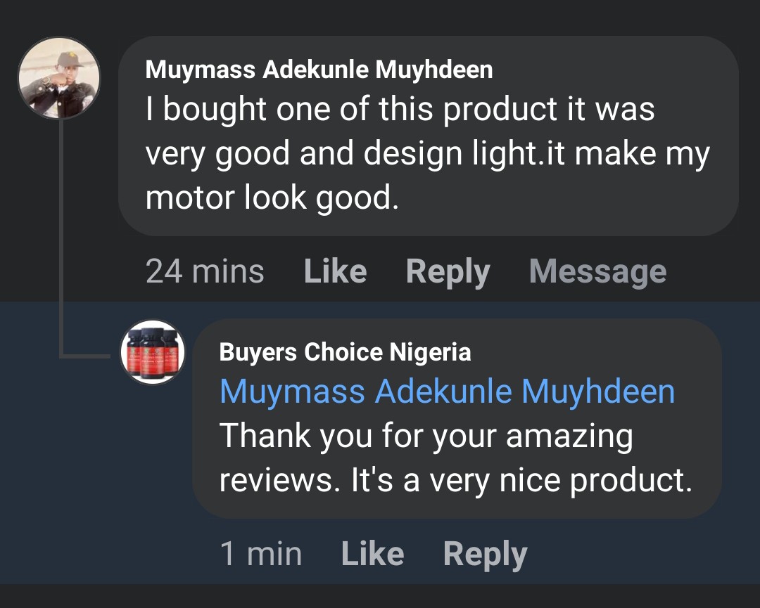 We'll send your product to your doorstep. We offer payment on delivery (cash/transfer).