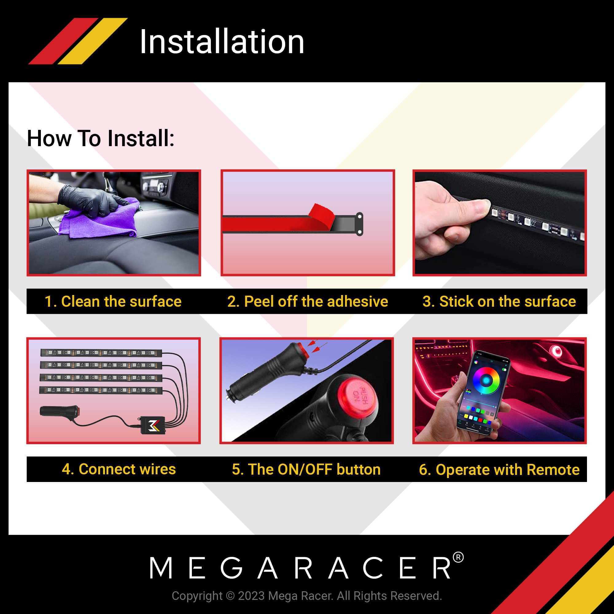 This car Interior LED Lights are very easy to install, just peel off the adhesive sticker so it doesn’t damage your car surface or any surface you choose to install it. Simply clean the surface thoroughly with either alcohol or spirit before sticking the lights firmly. Just as simple as ABC