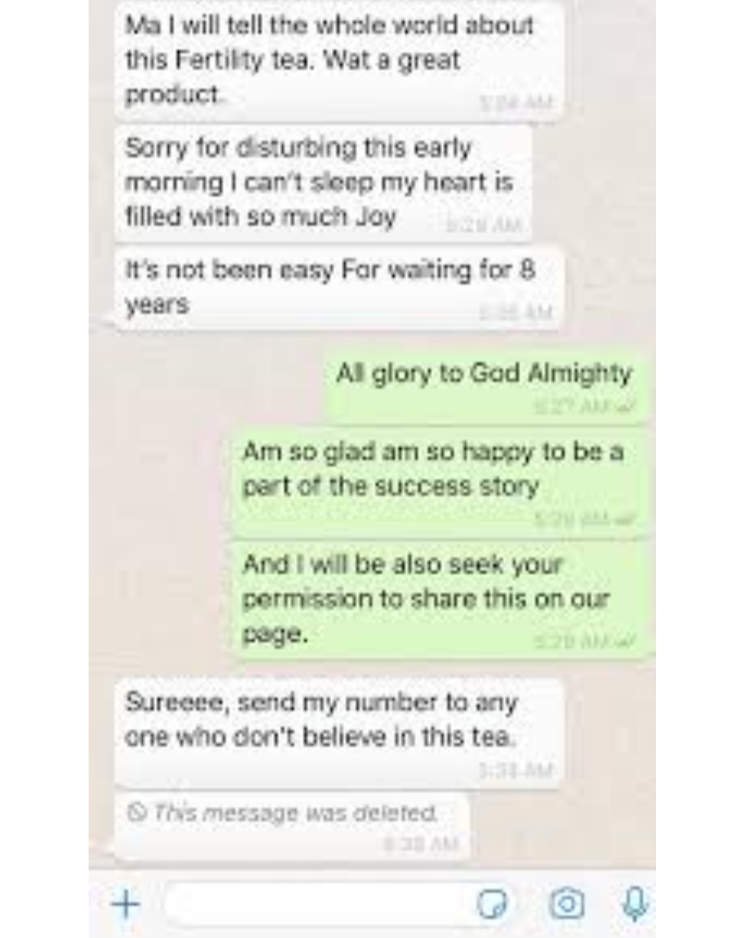 This Newly Improved FERTILTY TEA With Advanced Formula And More New Ingredients For Efficiency And Effectiveness Clears Each And Every Womb’s Toxin. Is Not Just KNOWN To NAFDAC, It Also Has International APPROVAL By FDA, CMP, And HALAL So You Can Use It Without Fear!. The Tea Works Like Magic
