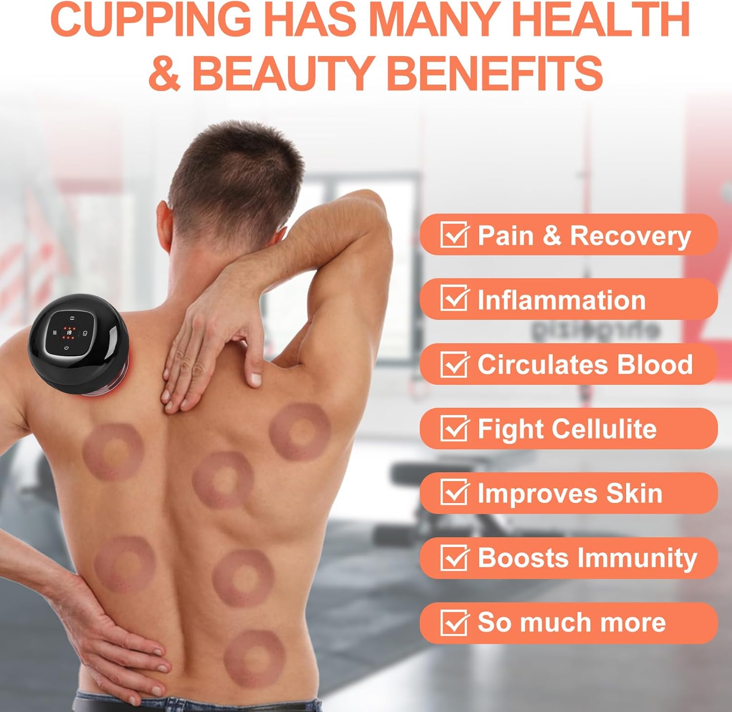 Enhance muscle recovery, release stress and tension, Harness the therapeutic benefits, and soothe discomfort with our Intelligent Cupping Massage Device.