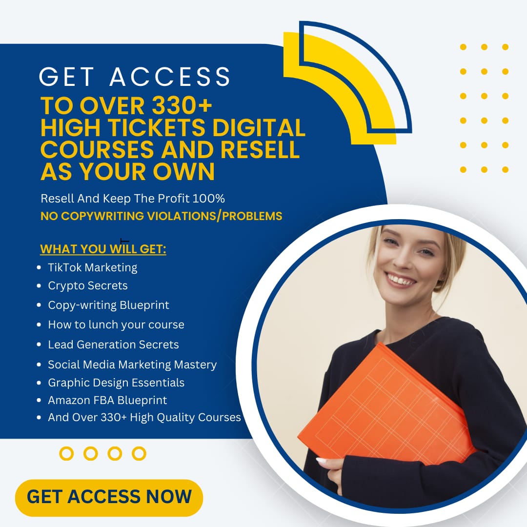 Well I’ve got a solution for you if you are on this page consider yourself a lucky because you are going to get access to over 330+ high tickets quality courses that will literally change your life for good, and the most amazing part is that you can re-package this courses and resell them for a huge profit.