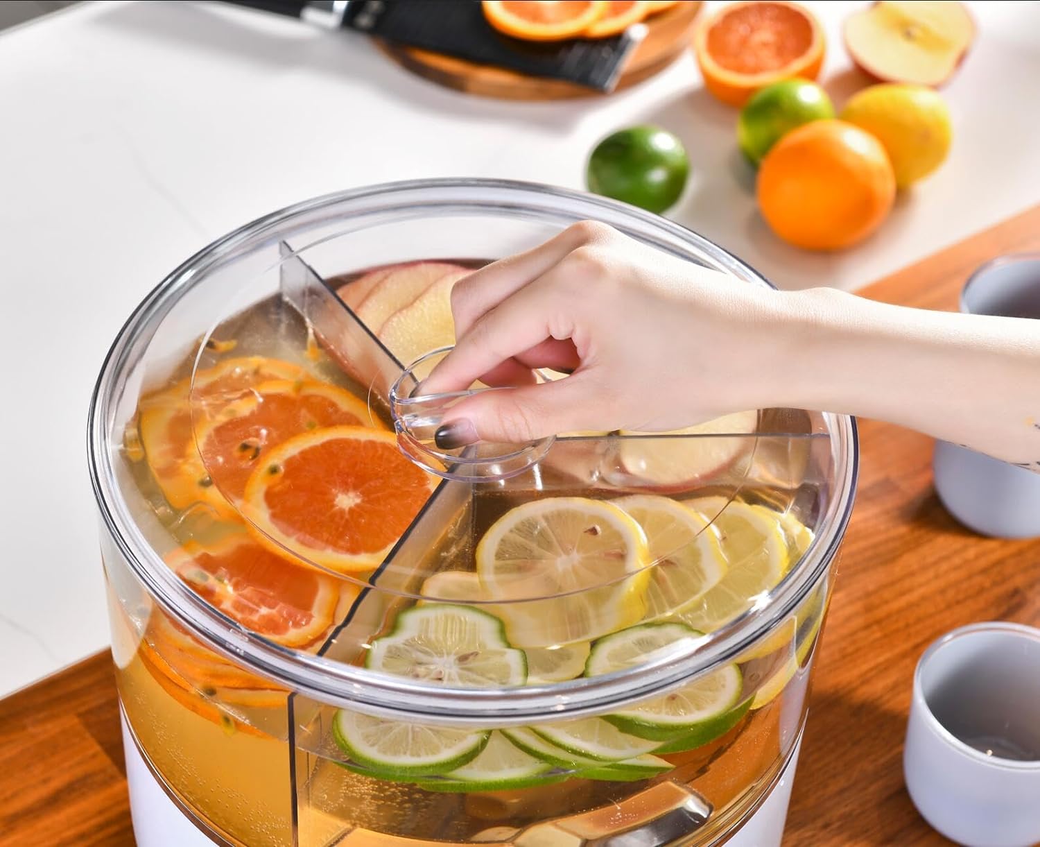 The 3 in 1 functionality is a game-changer for hosting gatherings or daily family use. With compartments for water, juice, beverages and other item’s, this dispenser eliminates the need for multiple pitchers or containers, streamlining the serving process and reducing clutter.