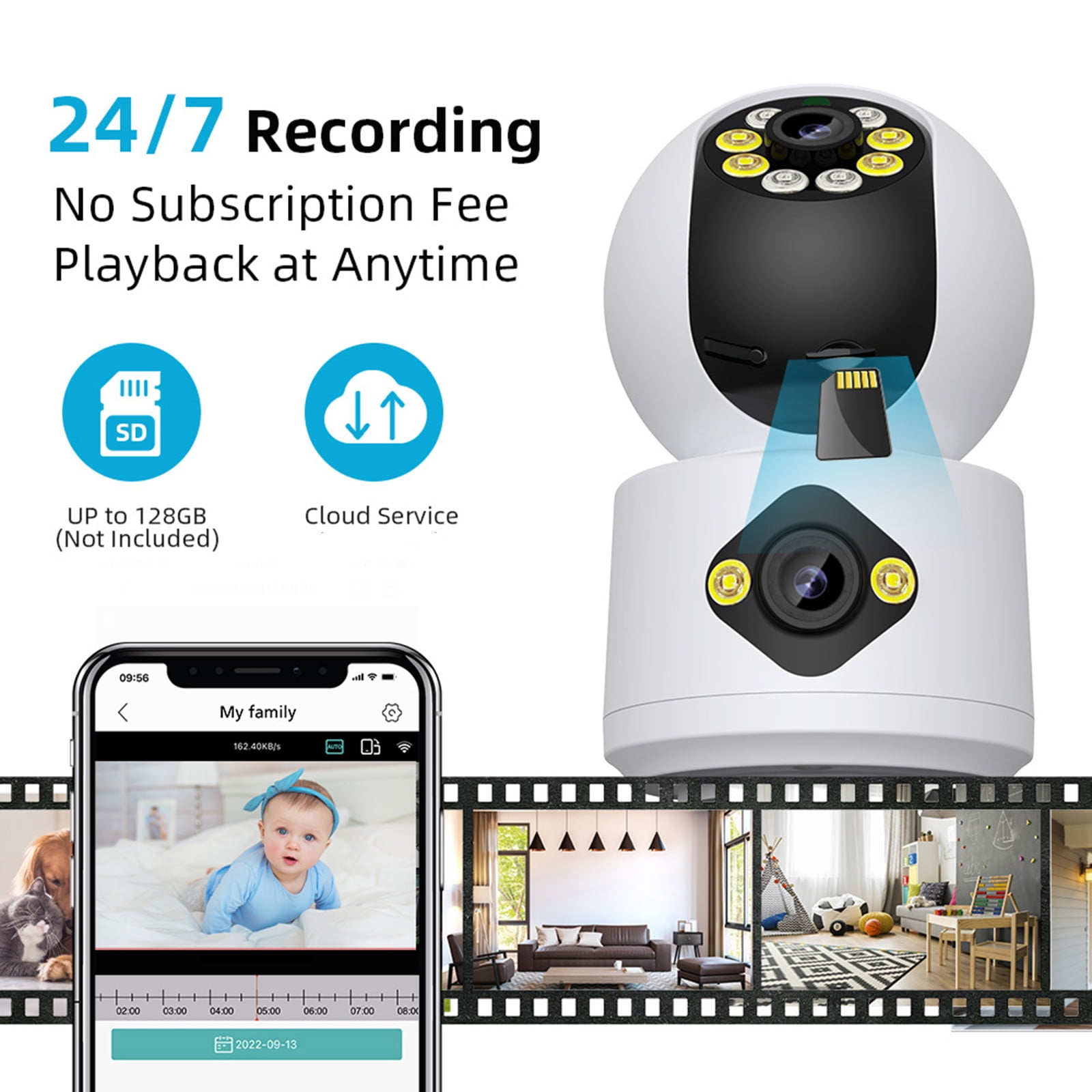 Our camara has a double lens that can monitor 2 different positions or angles simultaneously, just as a 2-in-1 camera this is equivalent of purchasing 2 cameras at once hereby savings you more money