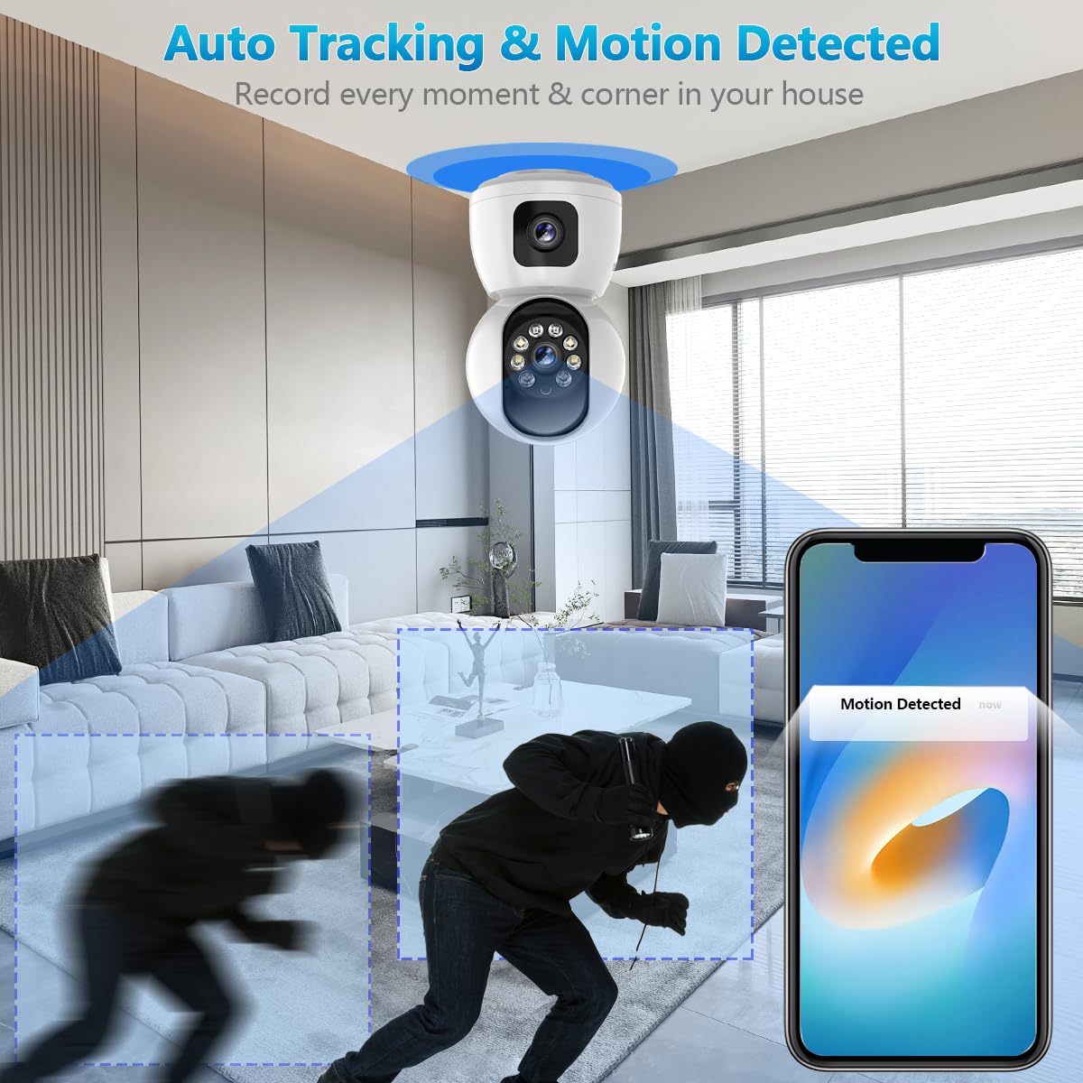 With a simple tap on your phone, the CCTV Dual Lens Camera rotates 360° and tilts 90°, covering every angle you desire. Take Total control in your hands!