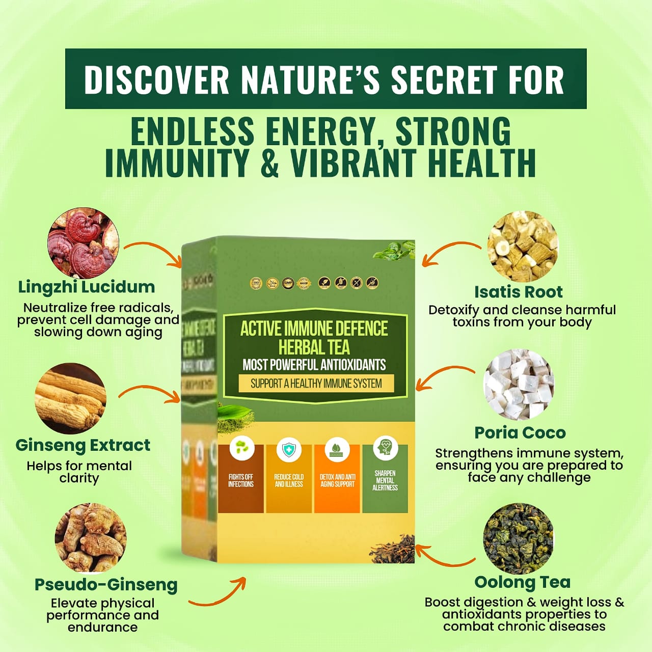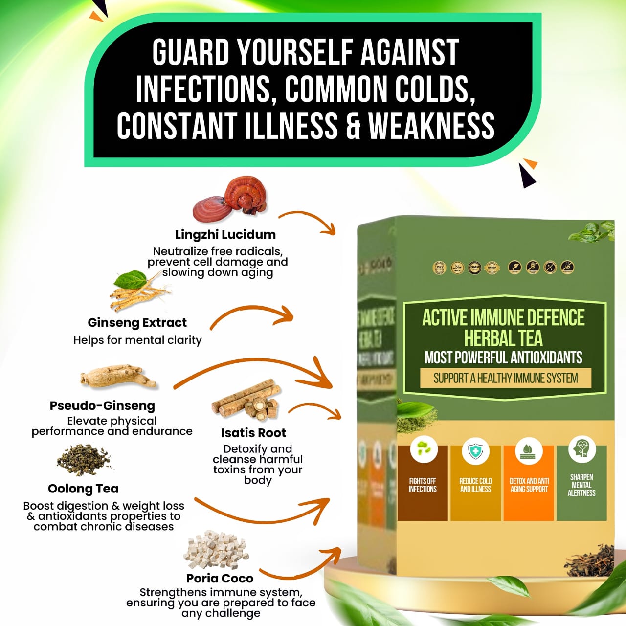 Natural and safe for healthy consumption with no side effects. Join thousands of satisfied customers who have successfully boosted their immune system and transform their health today with our Active Immune Defence Herbal Tea.