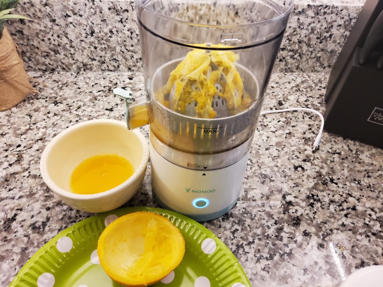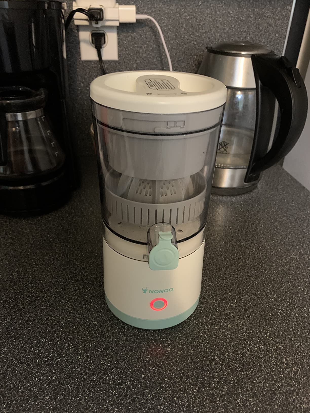 It’s awesome! 😍 Juicy amazingly and it’s not loud at all ! So easy to use – just press the button and it starts. Easy to clean as well.