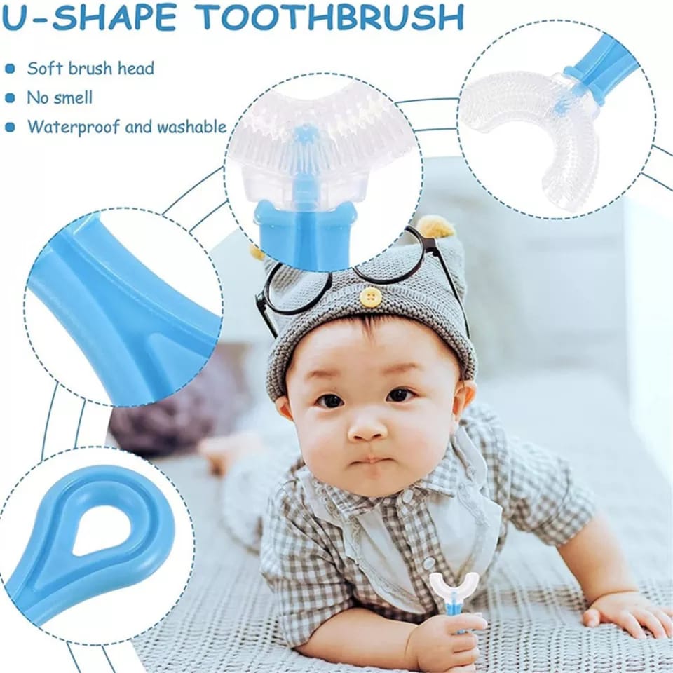 Ergonomic U-shaped brush head, suitable for the shape and mechanics of children’s teeth structure. uniquely designed for children’s tender gums and sensitive teeth.