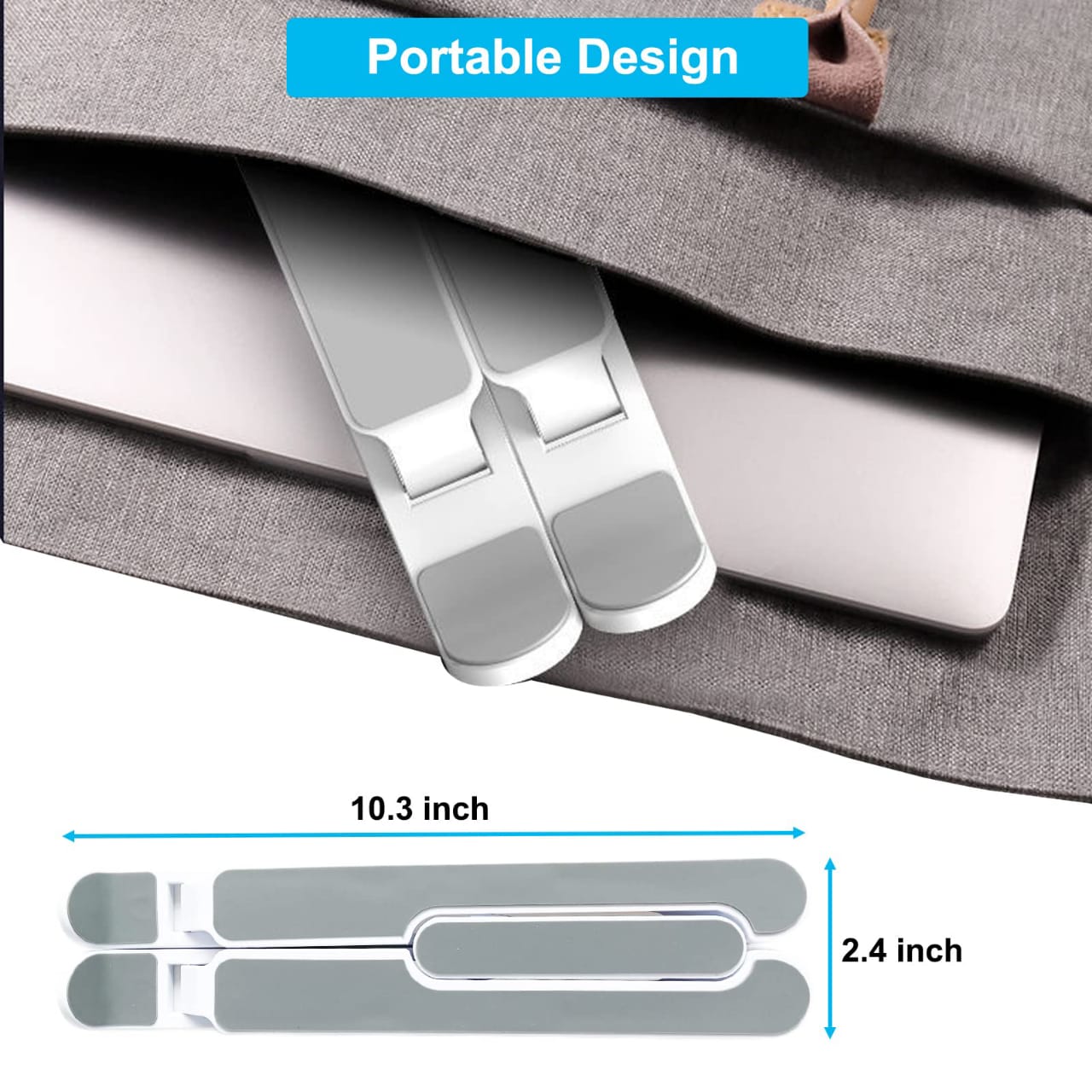 Adjustable & Ergonomic: The portable laptop holder is designed with adjustable height, which allows you to elevate and raise your laptop/tablet from the desk to the desired and comfortable height. Such a computer stand for a laptop is helpful to relieving eye fatigue, neck pain, back pain and improve your posture.