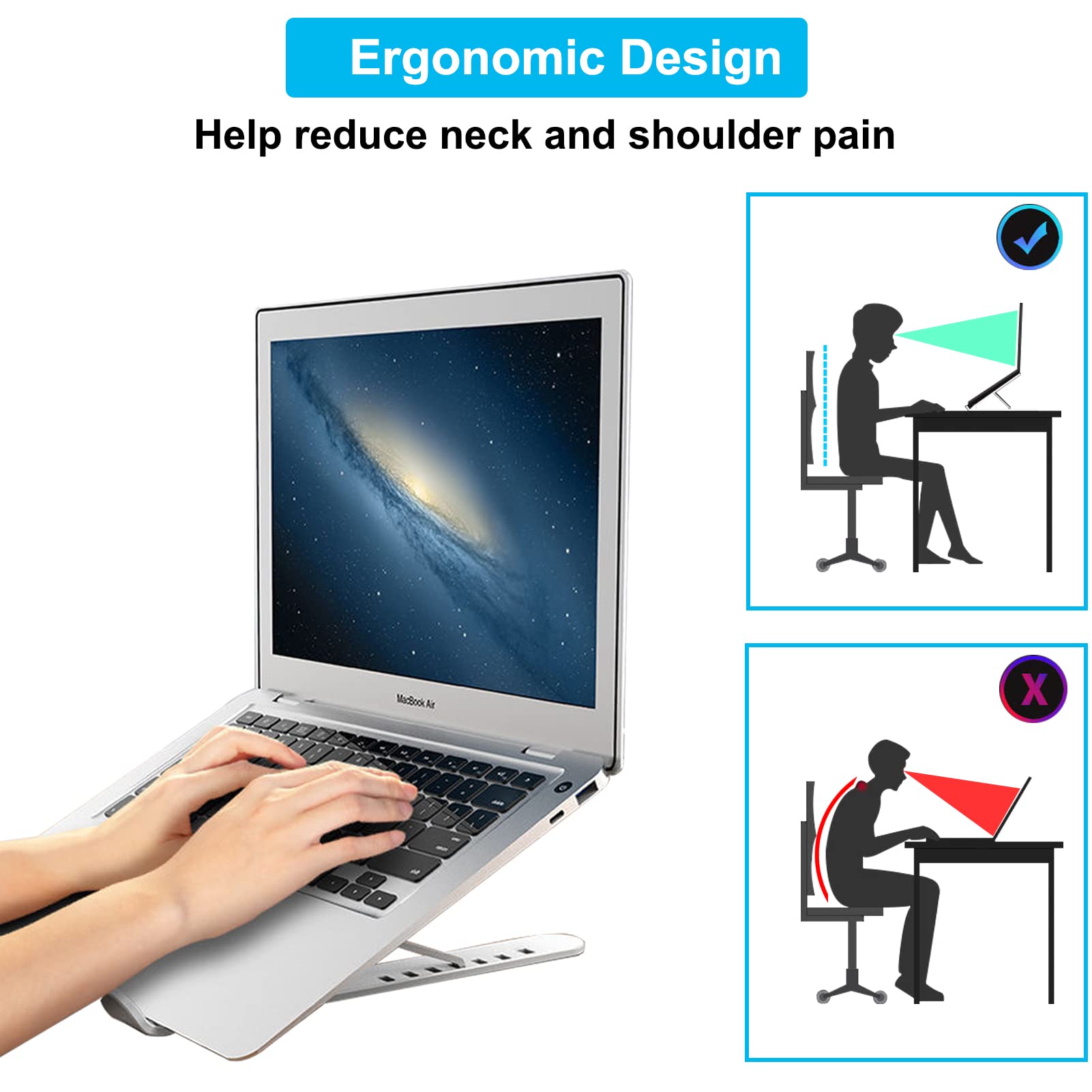 Our New Improved Ergonomic Laptop/Tablet Stand helps you to maintain better posture and work more comfortably, with multiple adjustable tilt angle options to customize your work setup. Adjusting the angle of your laptop also provides a more ergonomic keyboard position.