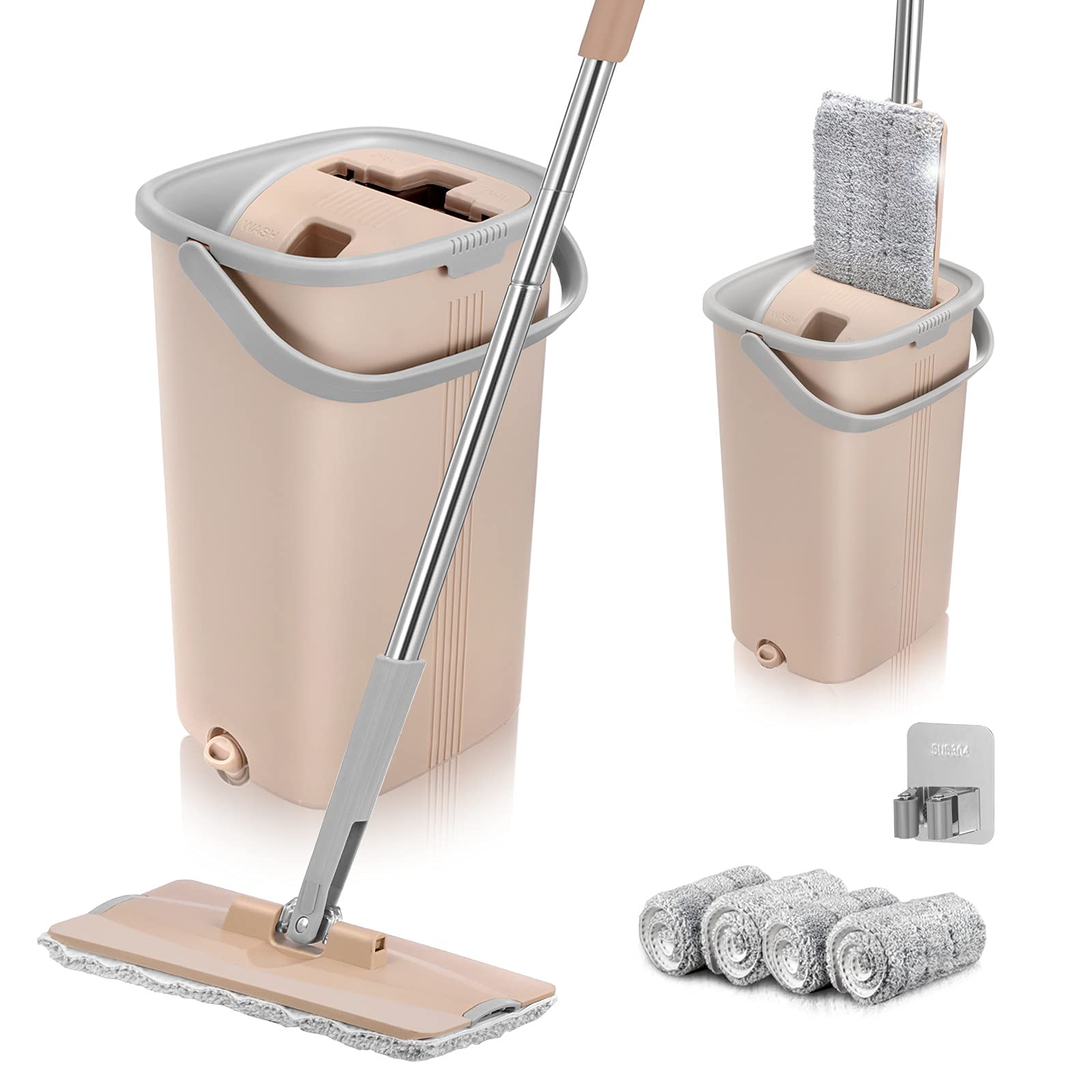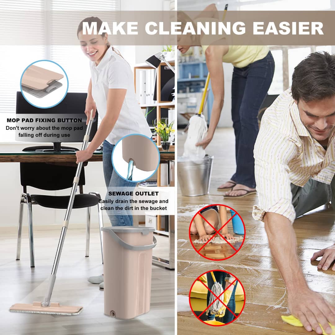 - The flat mop and bucket system can be easily stored in the corner of your house.
