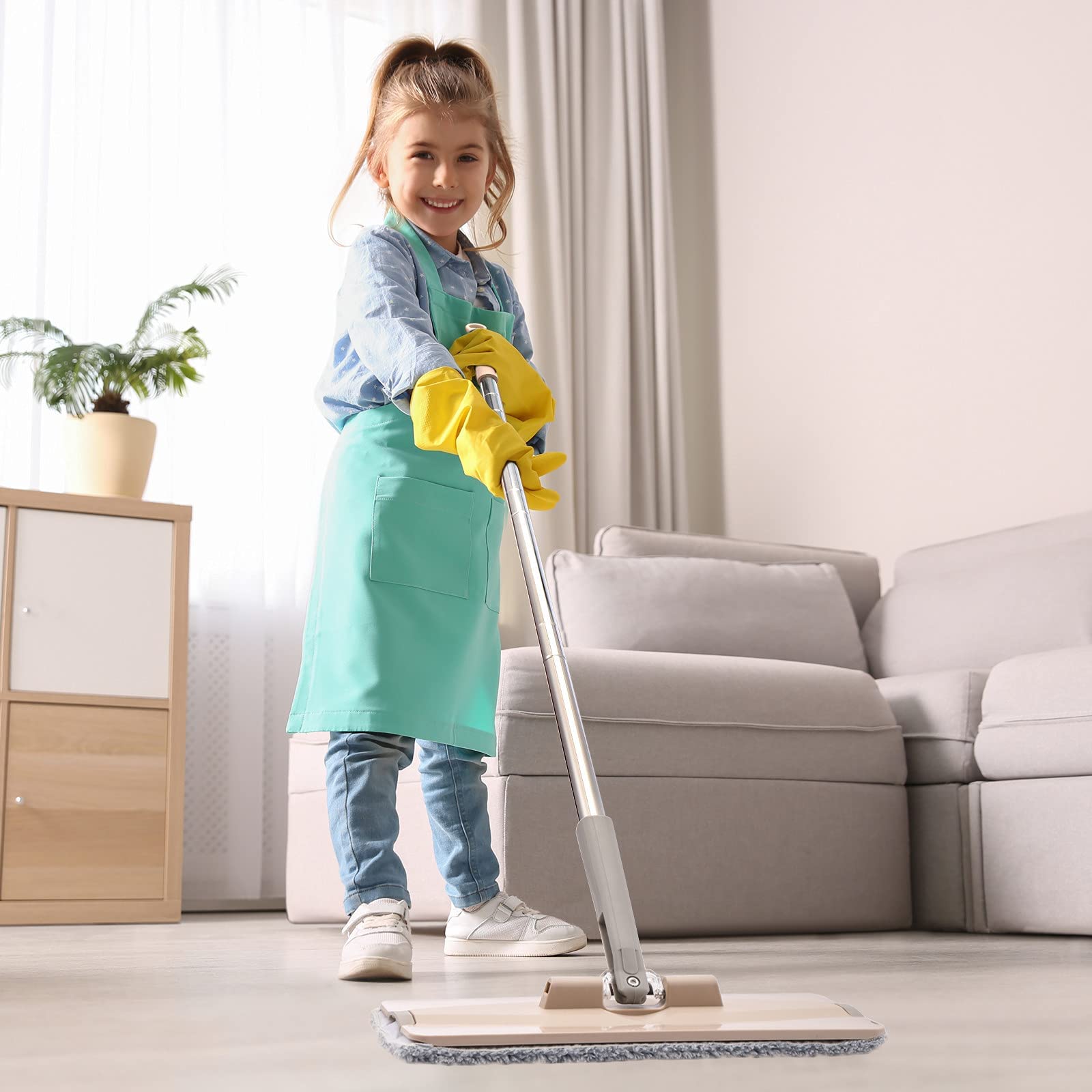 Adjustable: Increase to any length you want and mop those hard to reach places in your bedroom, kitchen, toilet, bathroom etc..