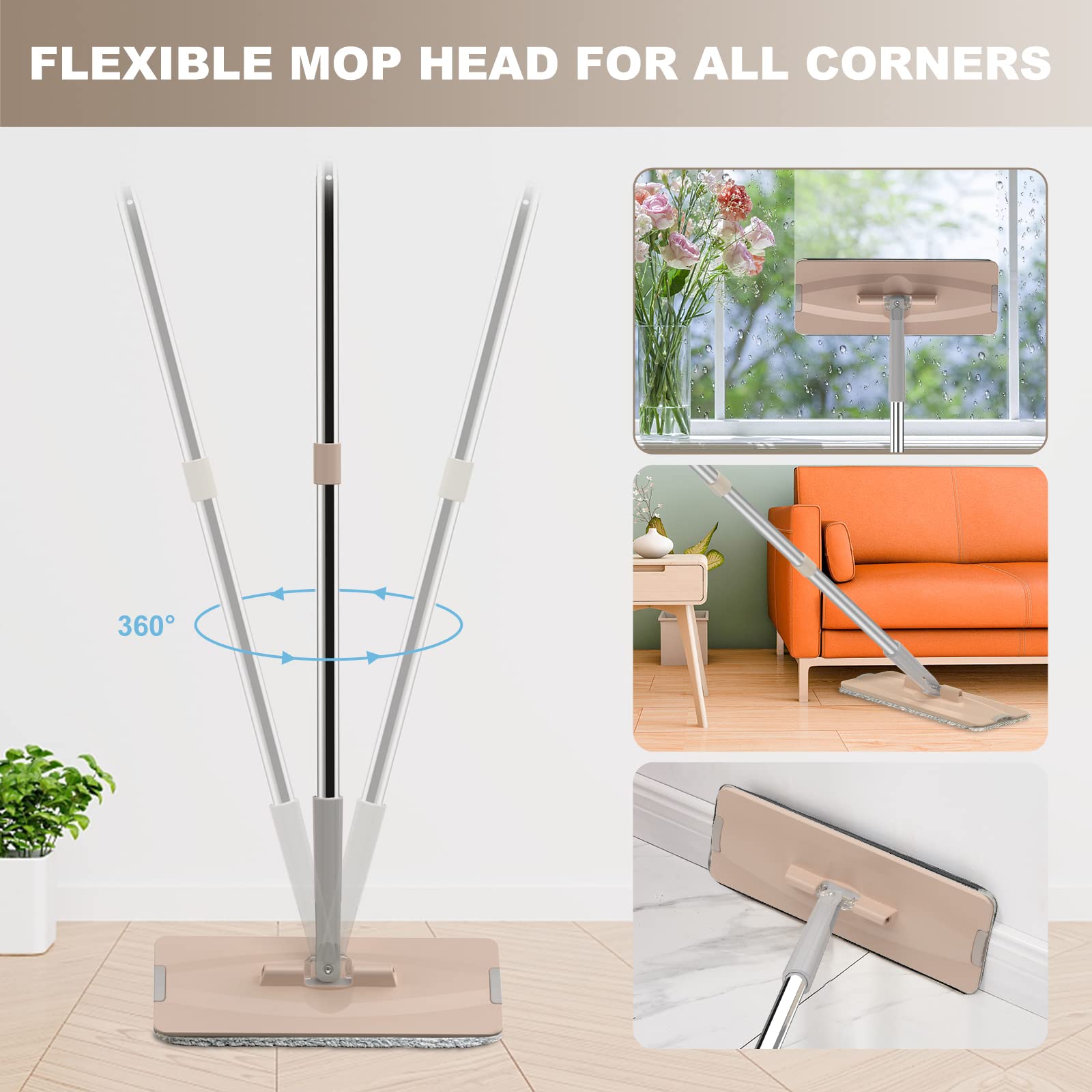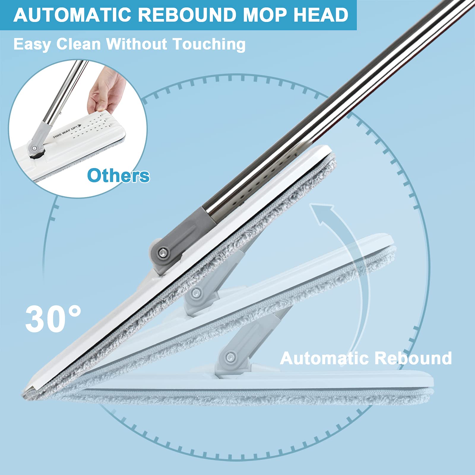 - This magic mop comes with a swivel mop head, automatic rebound, provides convenient washing & drying, makes it easy to clean any angles like sofa, bed, narrow gap, chair etc.