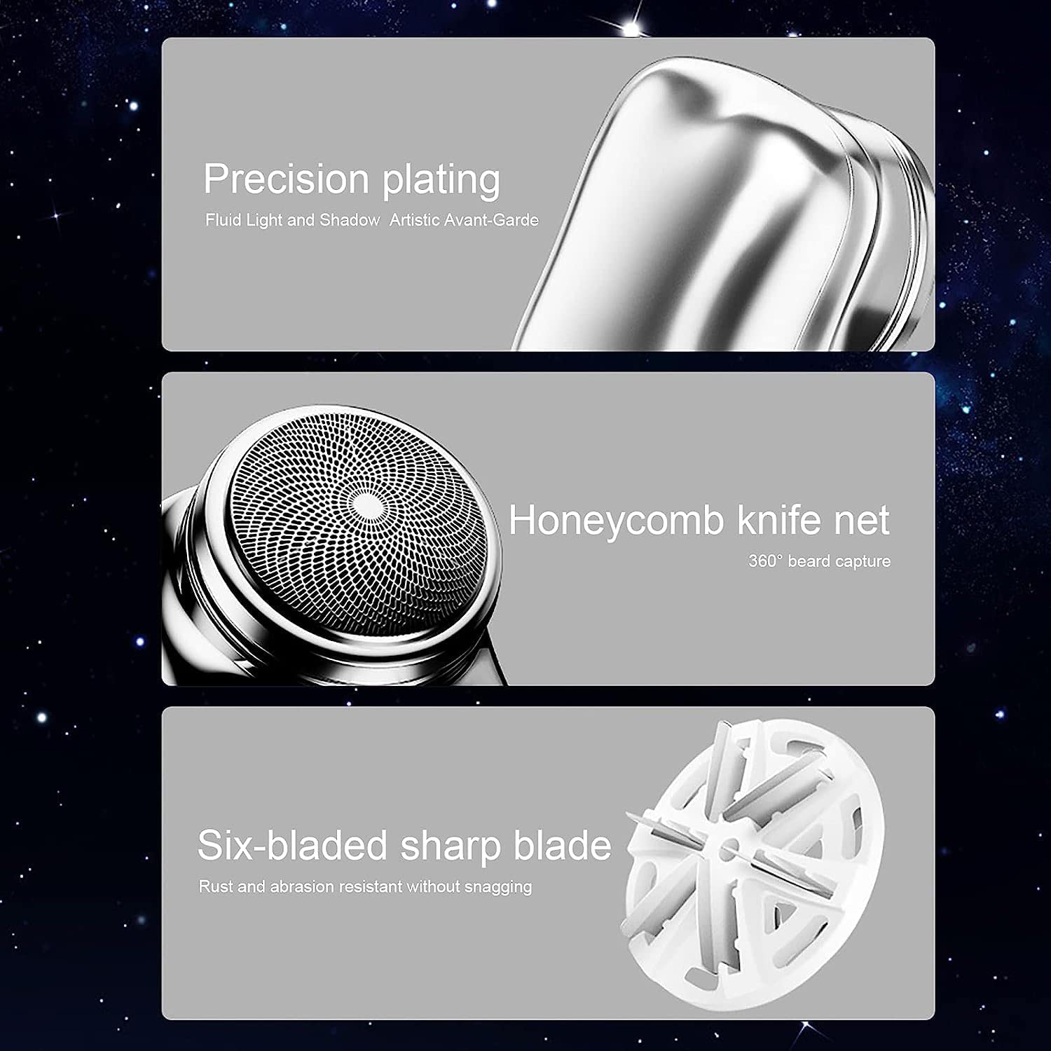 Newly upgraded 15 blade sharp stainless steel turbo rotating blades, specializing in hard beard, 0.1mm thin stainless steel foil, double ring 3D knife net, increase shaving volume, floating arc surface smooth and stick to the skin, remove hair from the root.