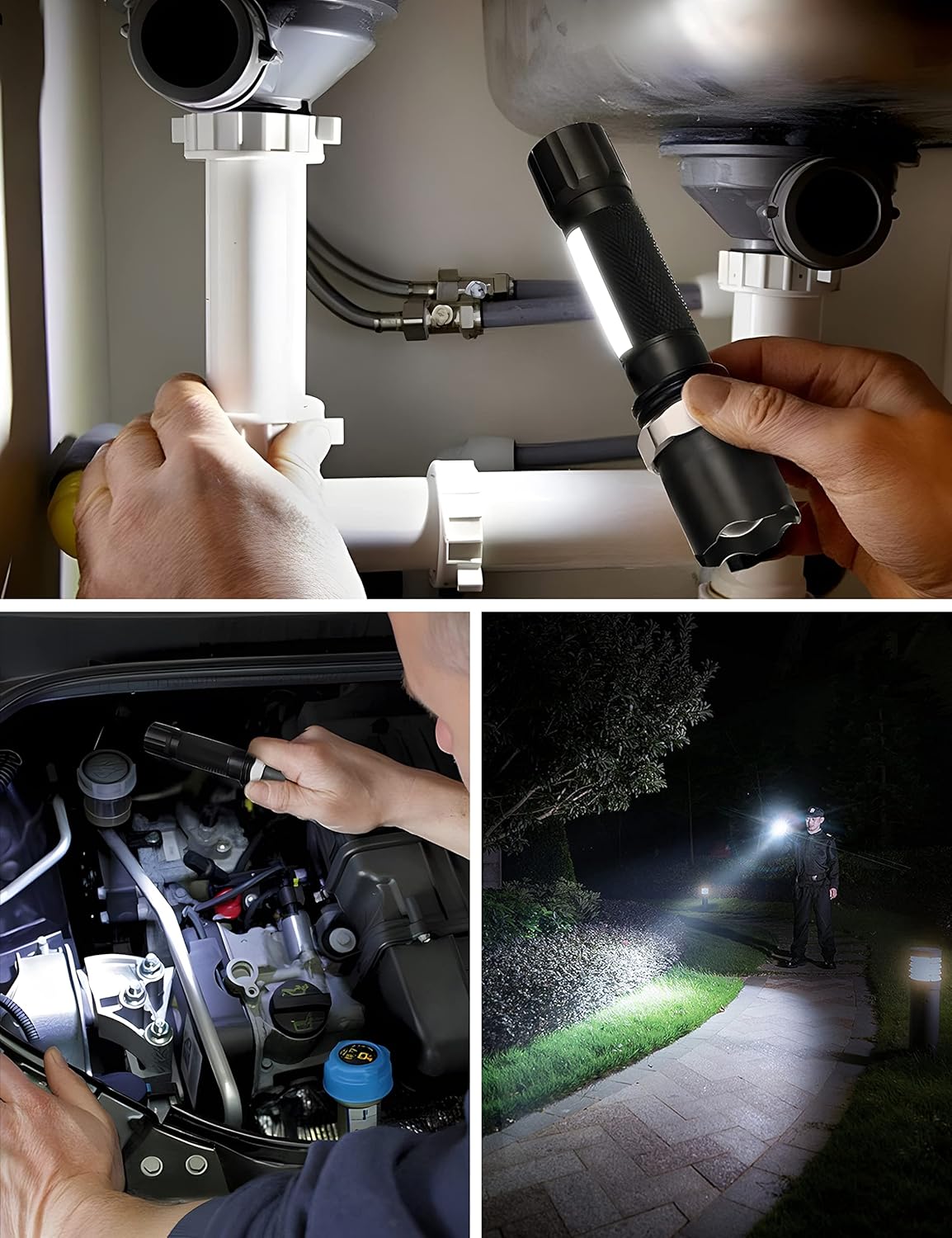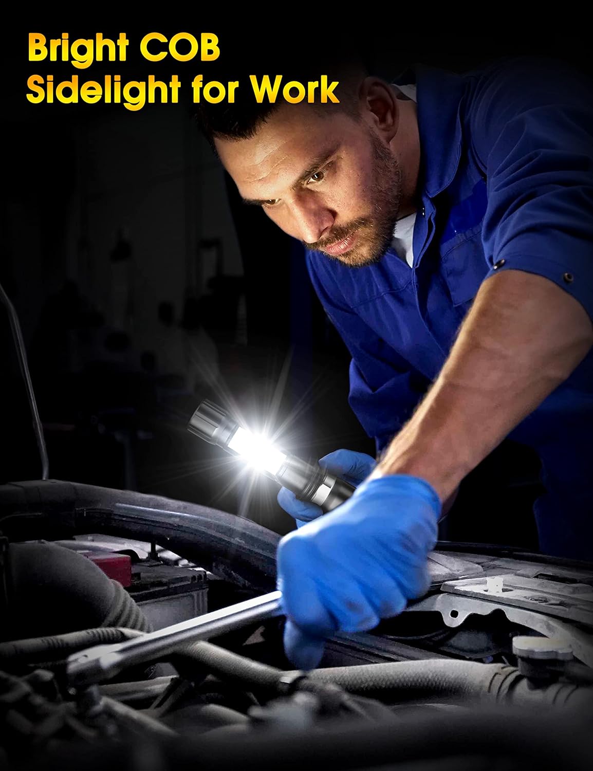 This flashlight isn’t just about brightness. The COB white light on the side transforms it into a desk lamp, and the magnetized lamp head adds convenience.