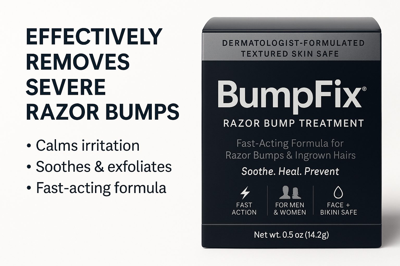 BumpFix is a fast-absorbing, dermatologist-tested solution that attacks razor bumps at the root — clearing inflammation, freeing trapped hairs, and calming the skin barrier.
