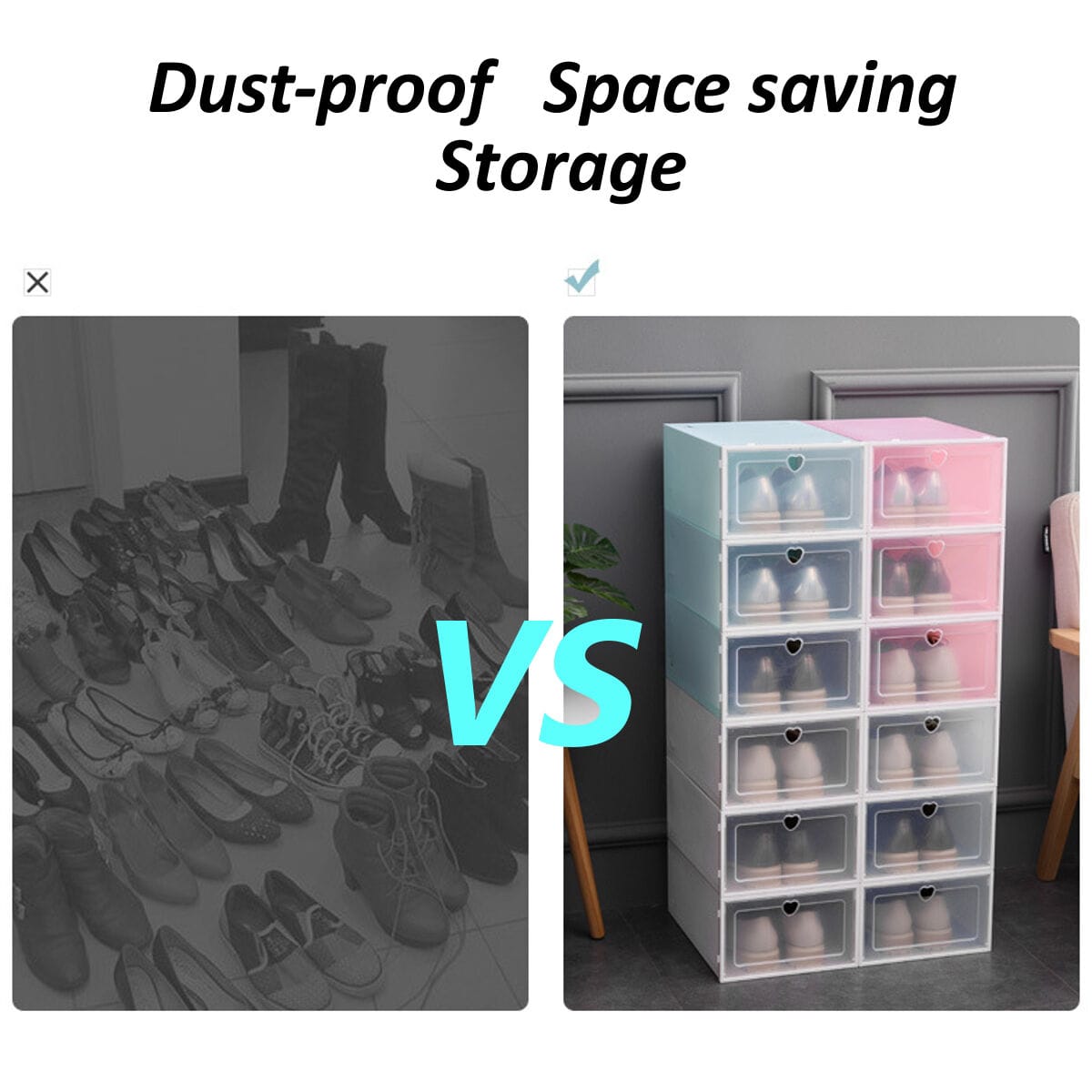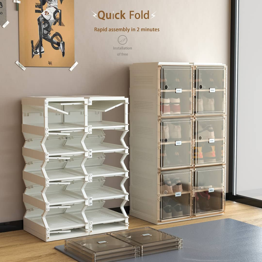 Our shoe box is made of strong PP plastic, and doors are made of ABS plastic, strong enough to be stackable, preventing deformation or collapse