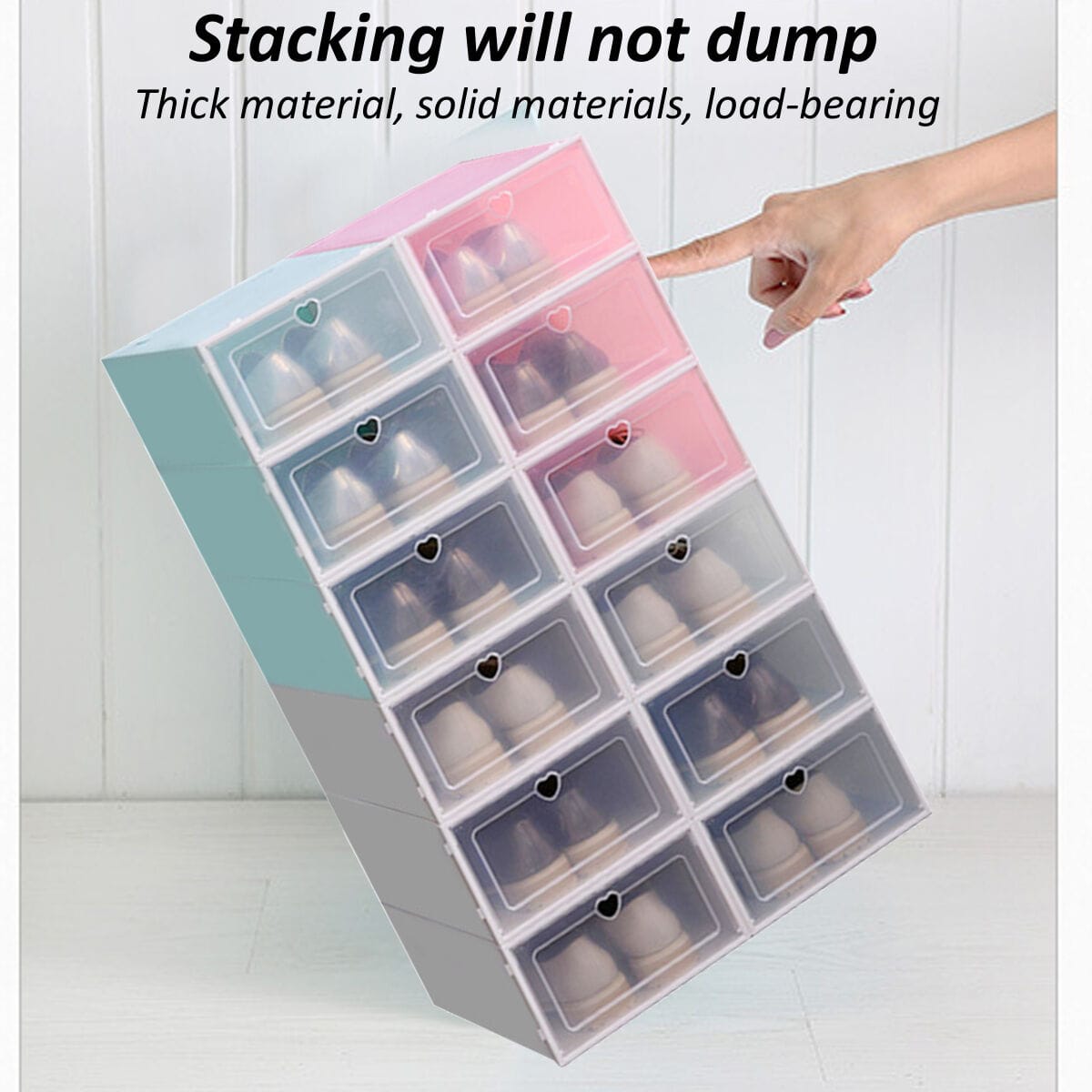 I just moved to my new apartment and bought these shoe boxes for storage.They are really easy to assemble and the material is strong. What I love the most about these boxes is that they are big enough for all kinds of shoes, even for my boots! I am very glad to buy these shoe racks for my new apartment. I definitely recommend them!