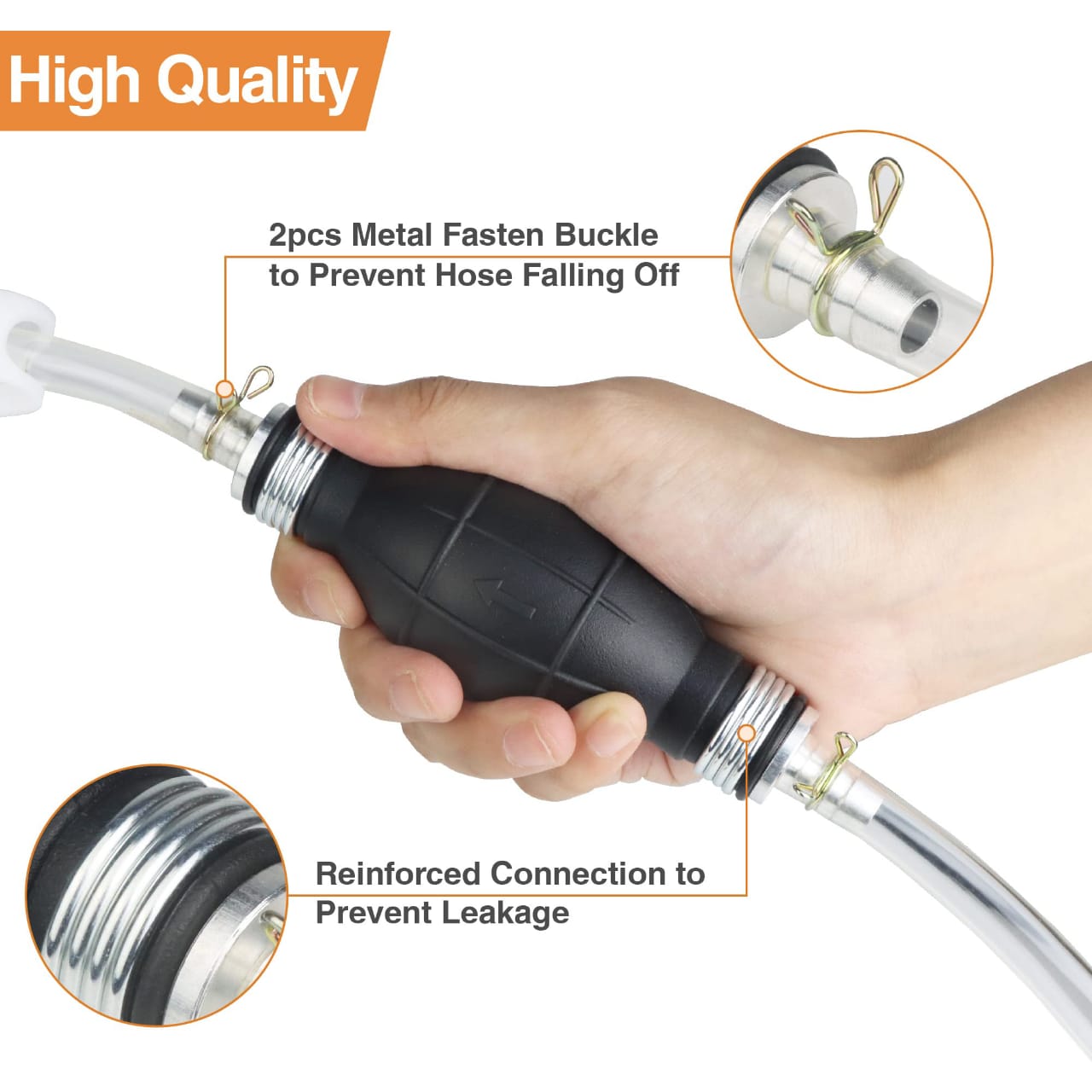 1. HAND SIPHON PUMP: High-flow hoses and large-bore ball pumps are faster at pumping, and the built-in pump allows you to siphon liquid from one container to another with ease and conveniently