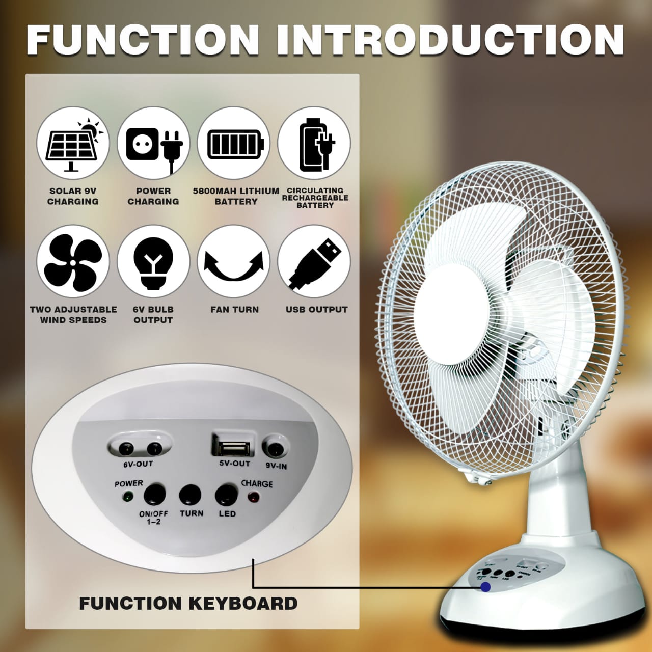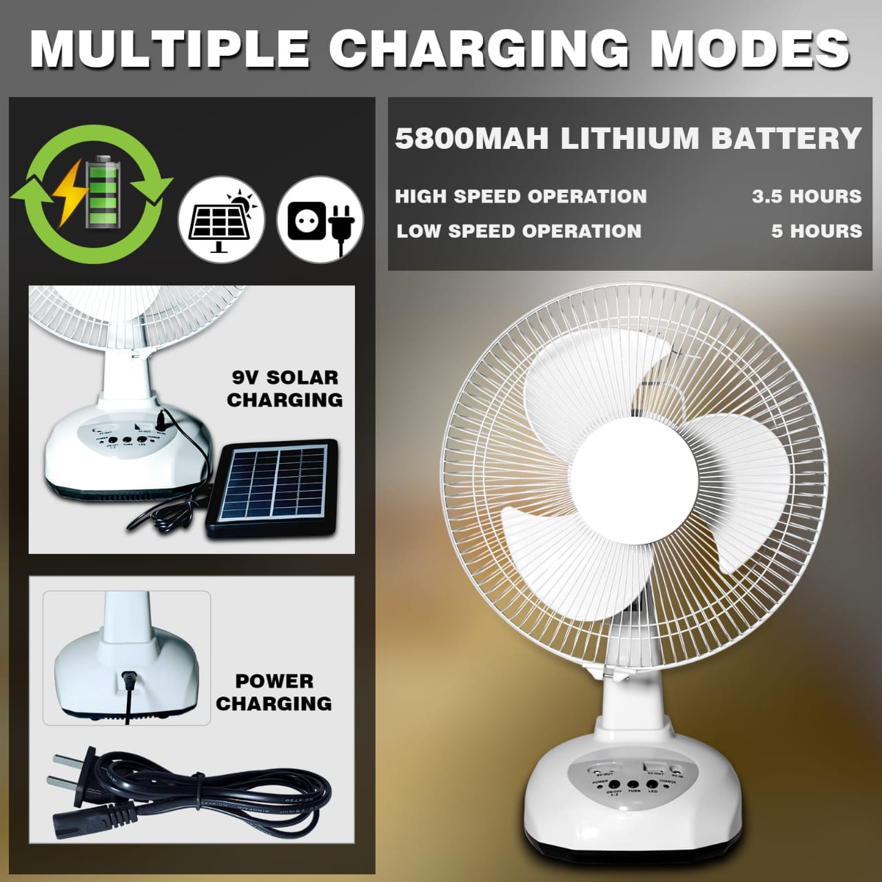 MULTIPURPOSE RECHARGEABLE FAN