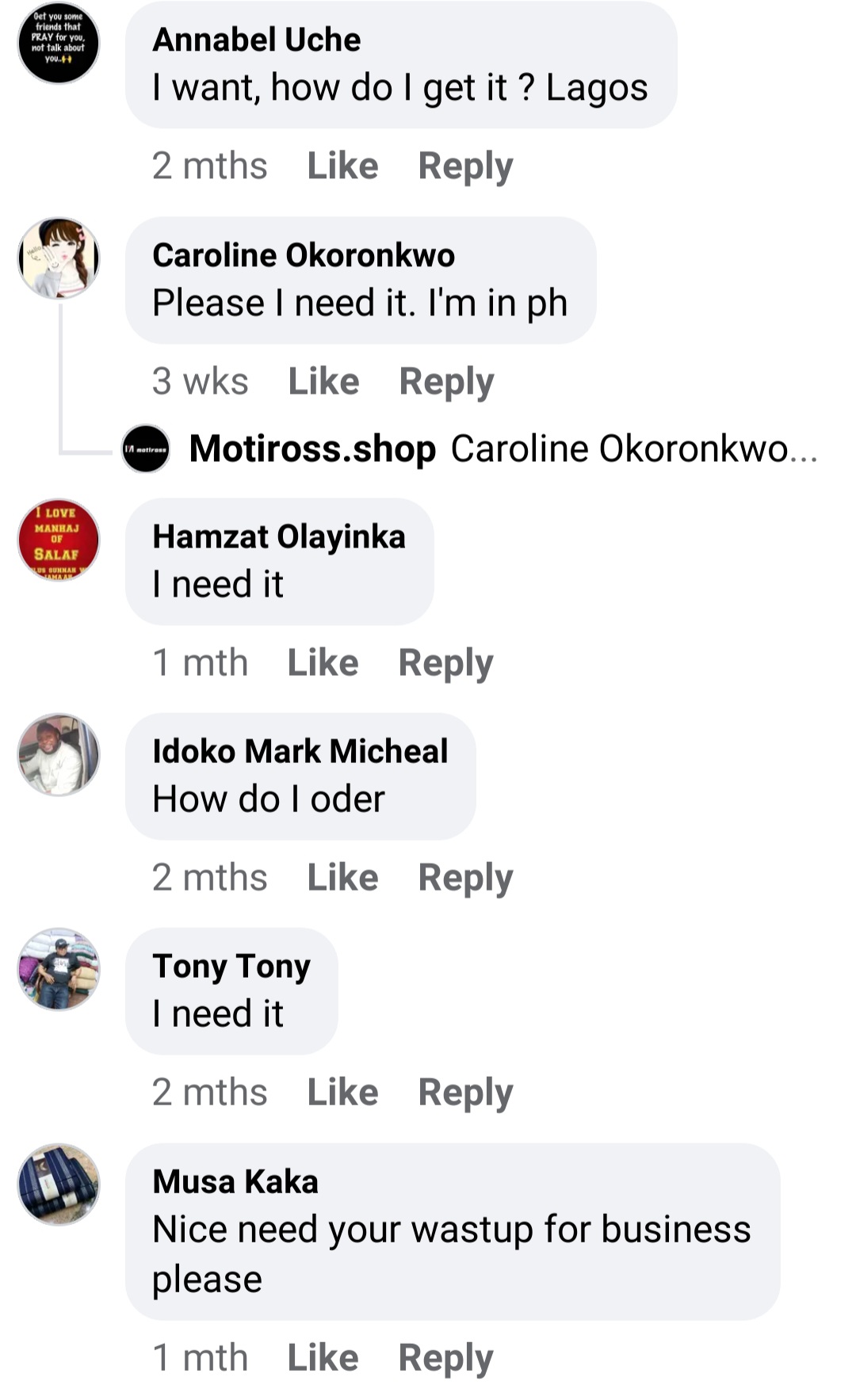 We'll send your product to your doorstep. We offer payment on delivery (cash/transfer).
