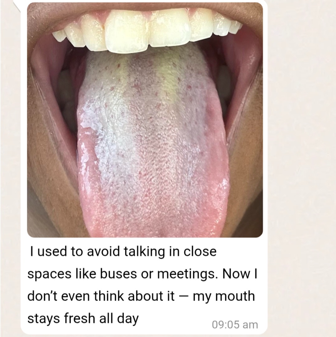 “My friends noticed my breath smelled better. I just started using the paste and scraper—it really targets the root, not just mask smells