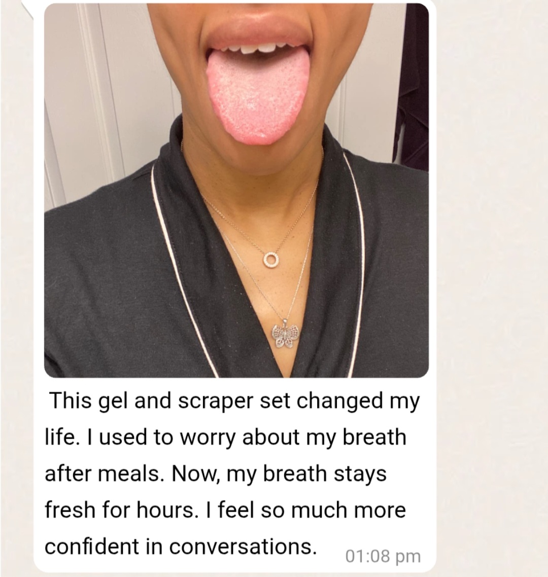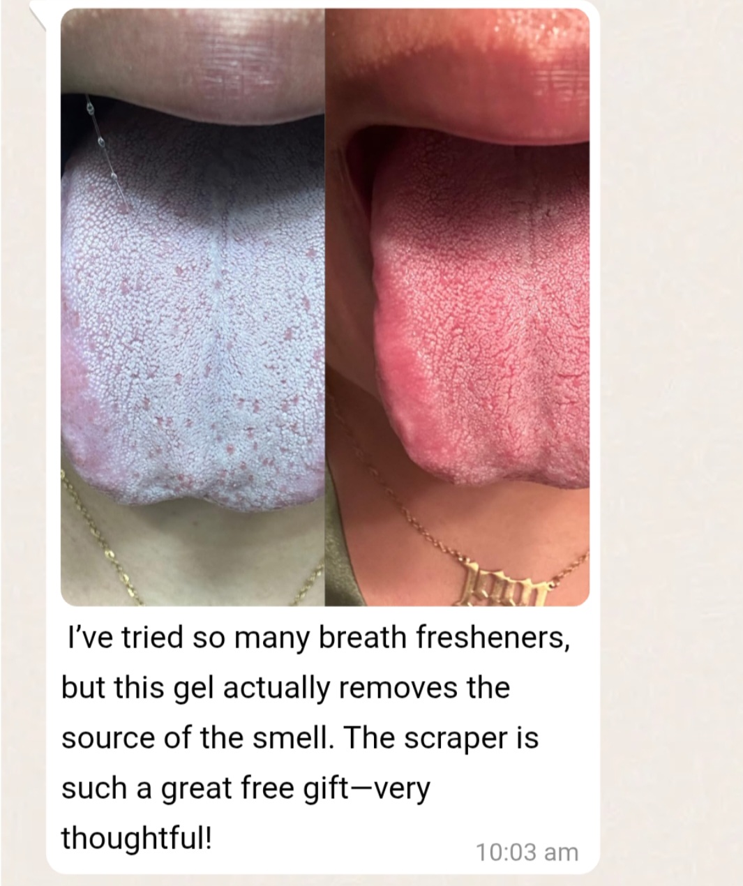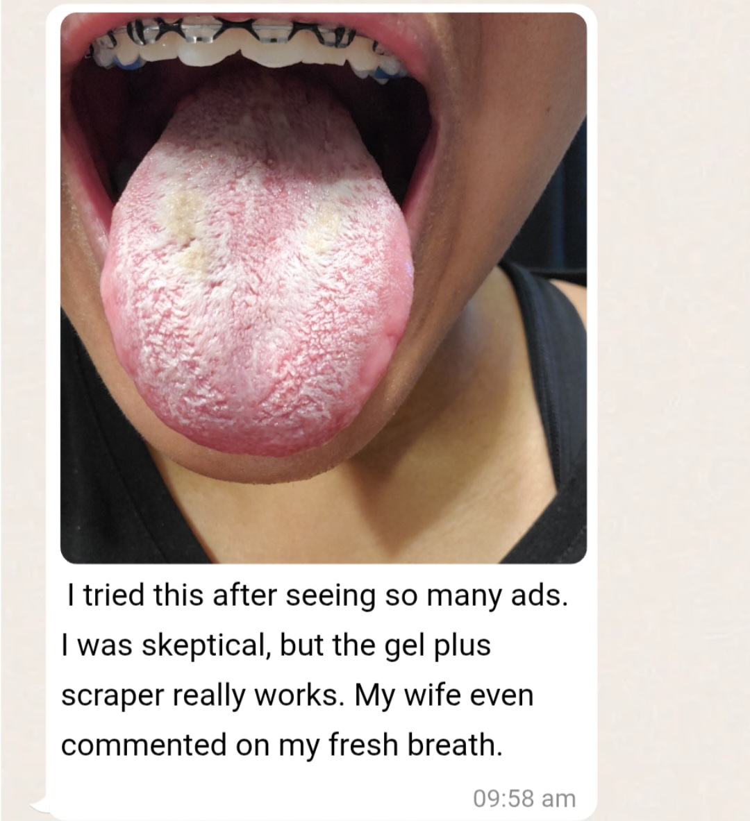 “I never knew how bad my tongue coating was until I removed it with this gel and scraper. My breath has never smelled better