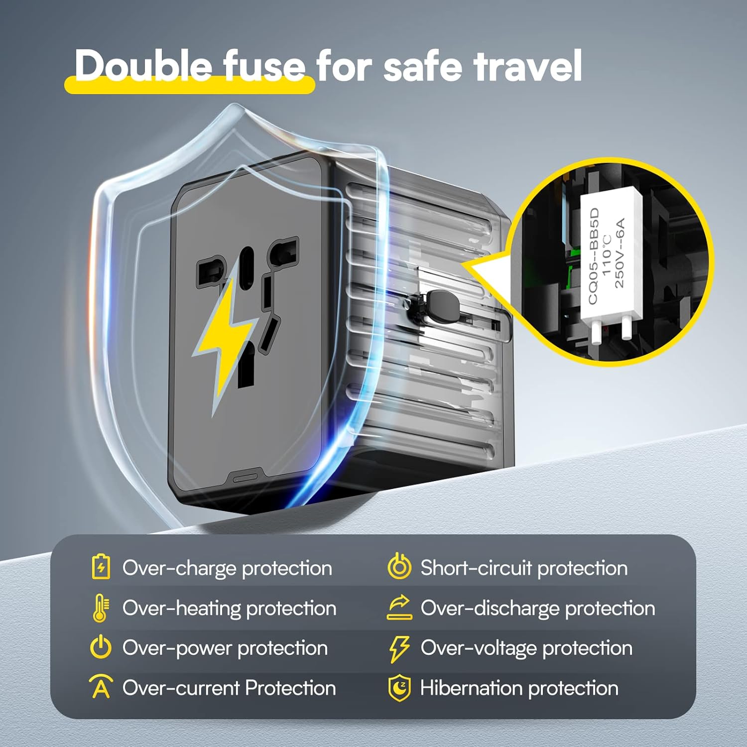 We understand the need for speed when it comes to charging your devices. That’s why our adapter features fast charging technology, capable of delivering rapid power to your smartphone, tablet, or other gadgets. Say goodbye to long charging times and hello to more time exploring your destination.