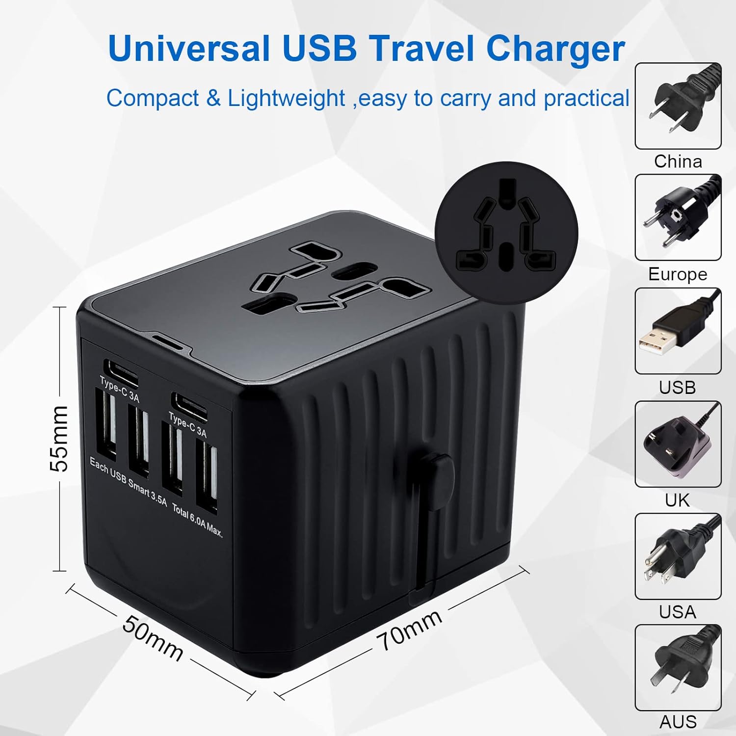 Our world travel adapter has 4 kinds of international standard plugs for USA, EU, UK and AUS etc. It can work in more than 150 countries including the US, UK, France, Italy, Europe, Australia, China, Japan, etc. It is small and portable making it a perfect fit for travel, it is your best travel accessory