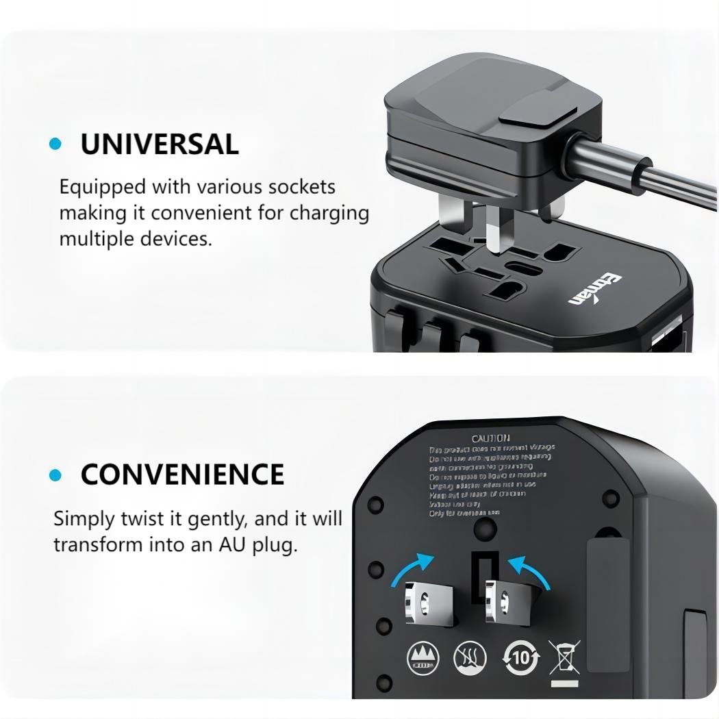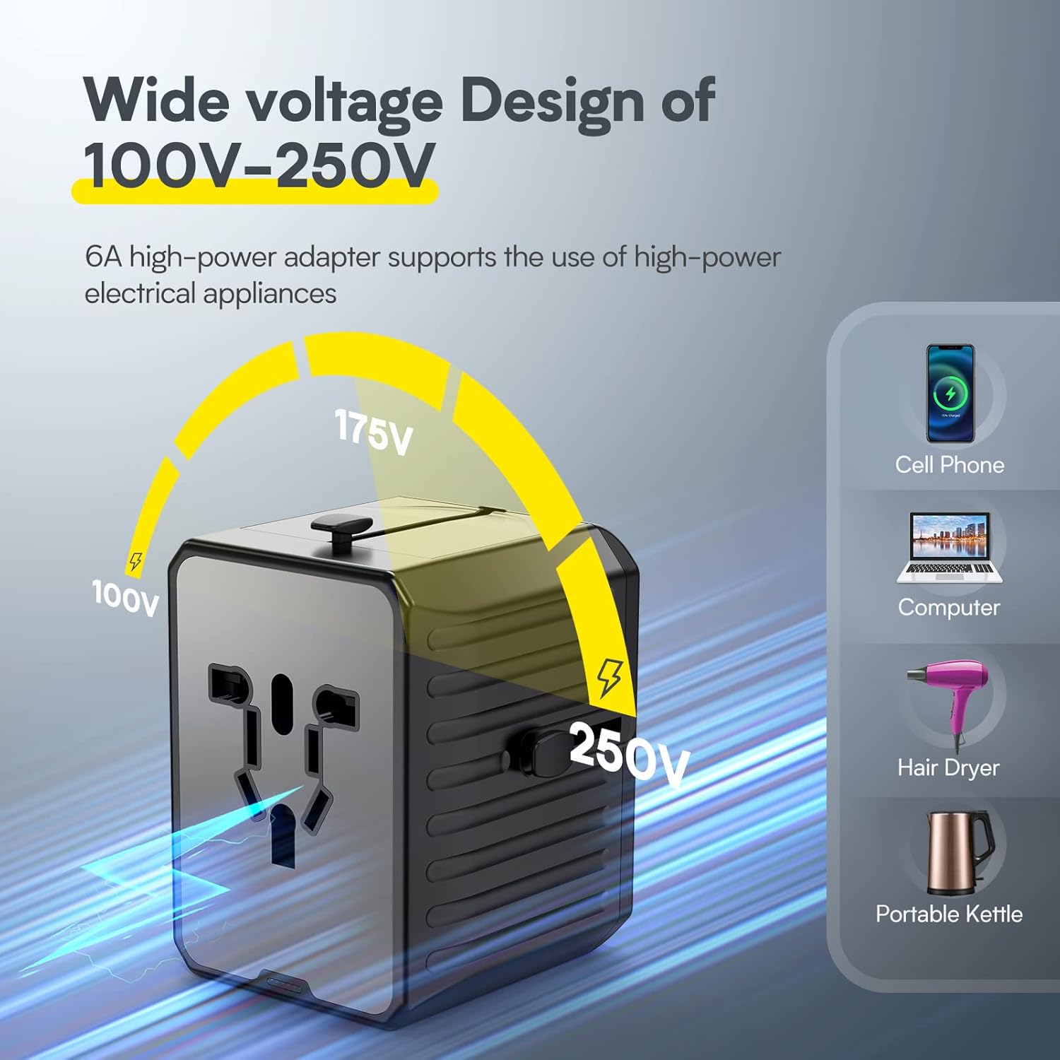 Introducing our All-in-one Universal Travel Power Adapter – your passport to staying powered wherever your adventures take you. This compact device isn’t just an adapter, it is your travel essential, ensuring your devices are always charged, safe, and ready for action. Embrace the world worry-free with our advanced charging solution.